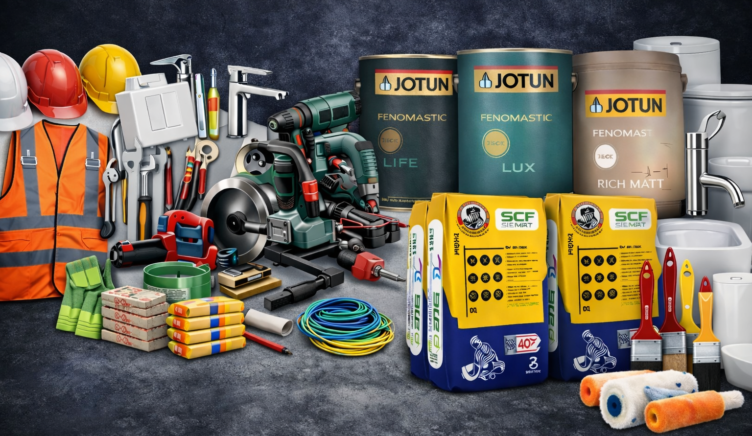 We supply a wide range of construction materials including cement, paints, sanitaryware, electrical accessories, safety equipment, hardware tools, and professional power tools for construction and renovation projects.